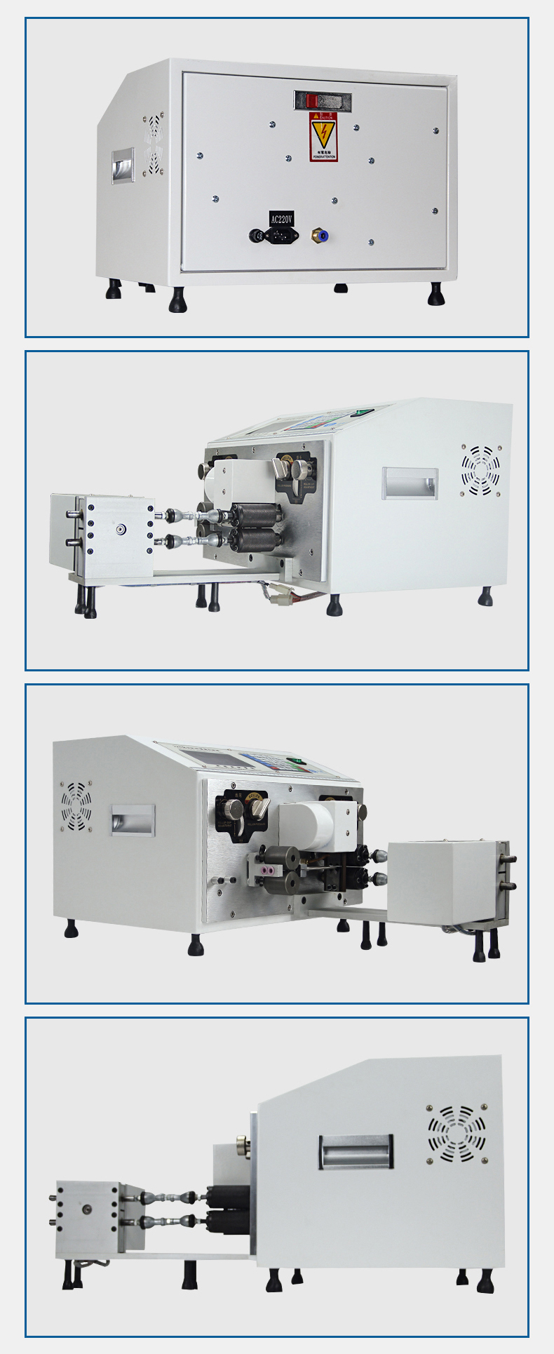 2.主要用于電源線、護(hù)套線、屏蔽線、音頻線、視頻線、USP線、數(shù)據(jù)線、電話線、裁斷和剝外皮一次性完成,且多層扁平電源可一次性裁斷和內(nèi)外同時(shí)剝皮。